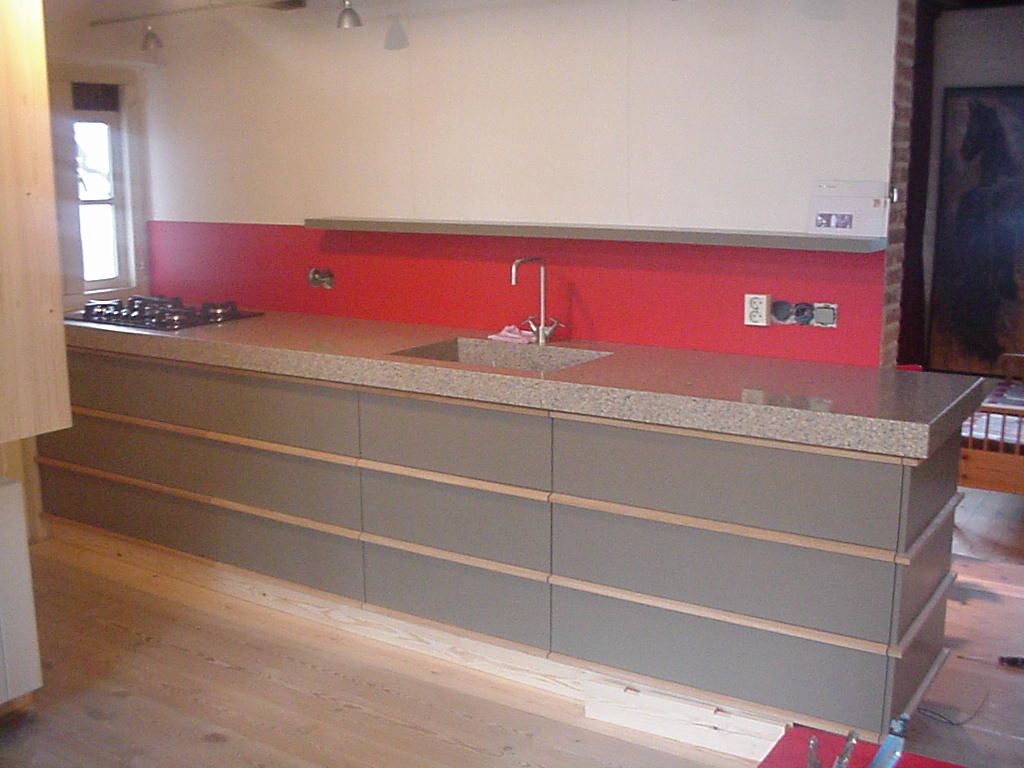 Keuken gemaakt van MDF en met de hand geverfd in kleur
